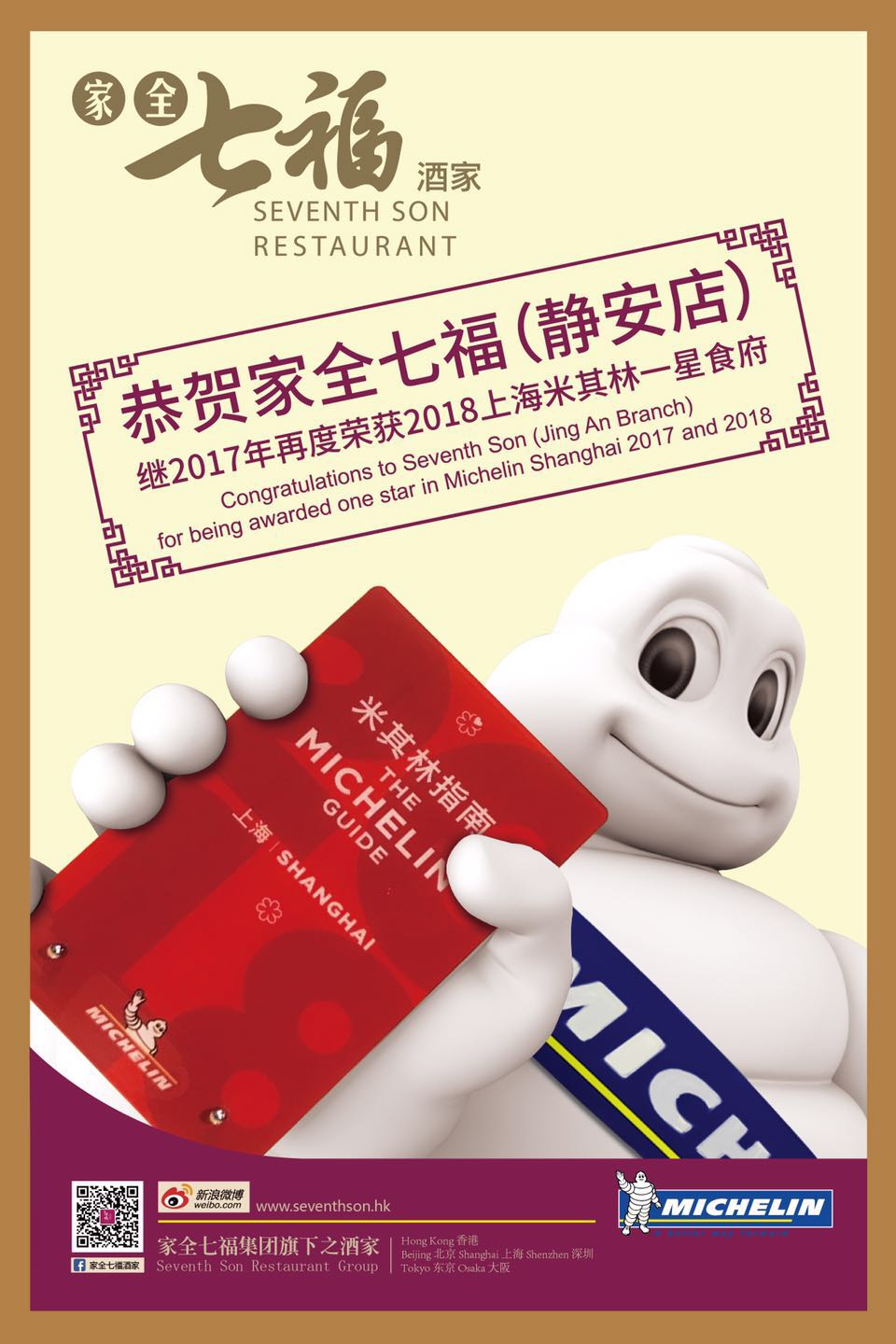 Congratulations to Seventh Son Jing An Branch for being awarded one star in Michelin Shanghai 2017 and 2018