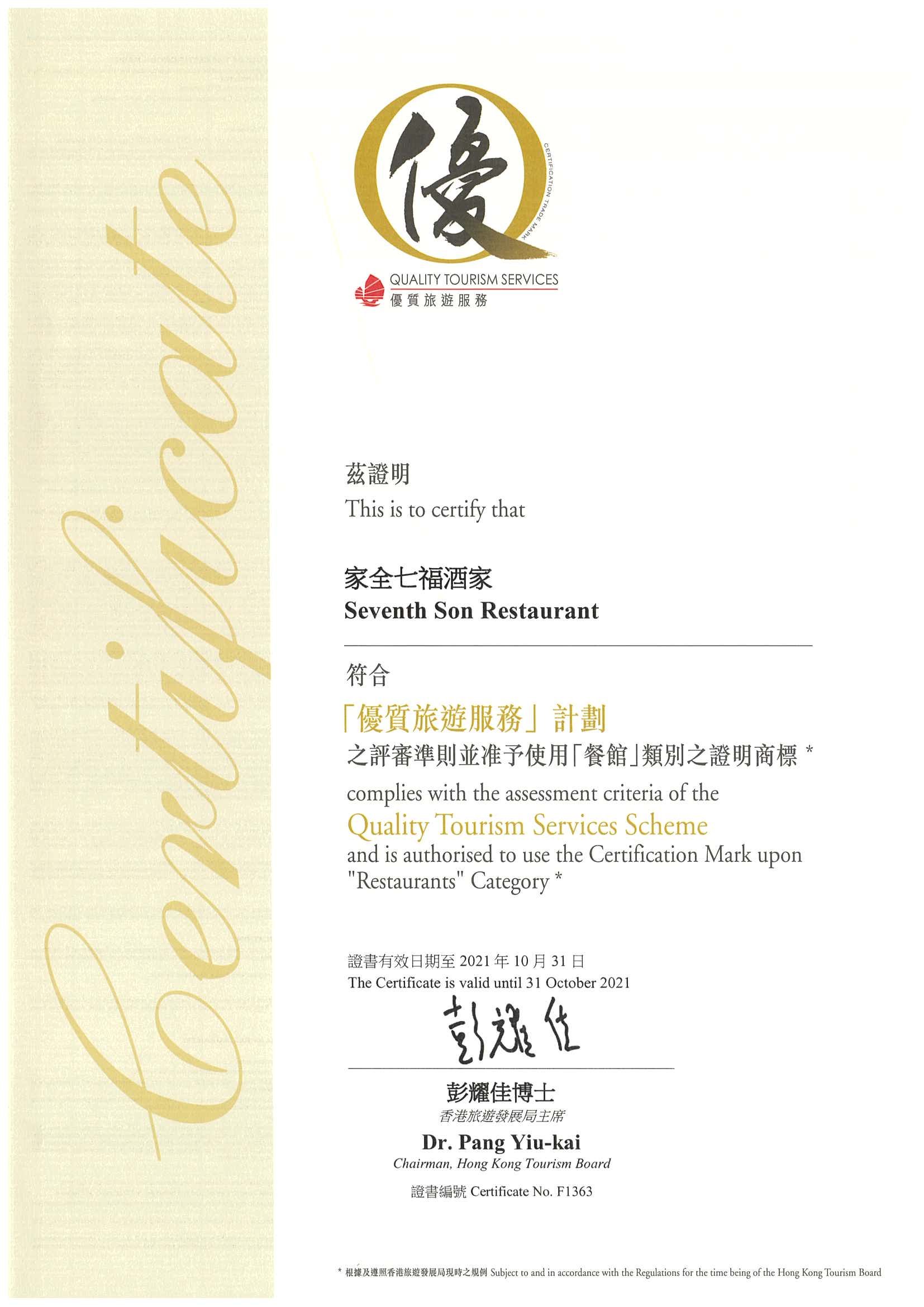 Hong Kong Shop Get Approval Certificate from the Hong Kong Quality Tourism Services Scheme 2021